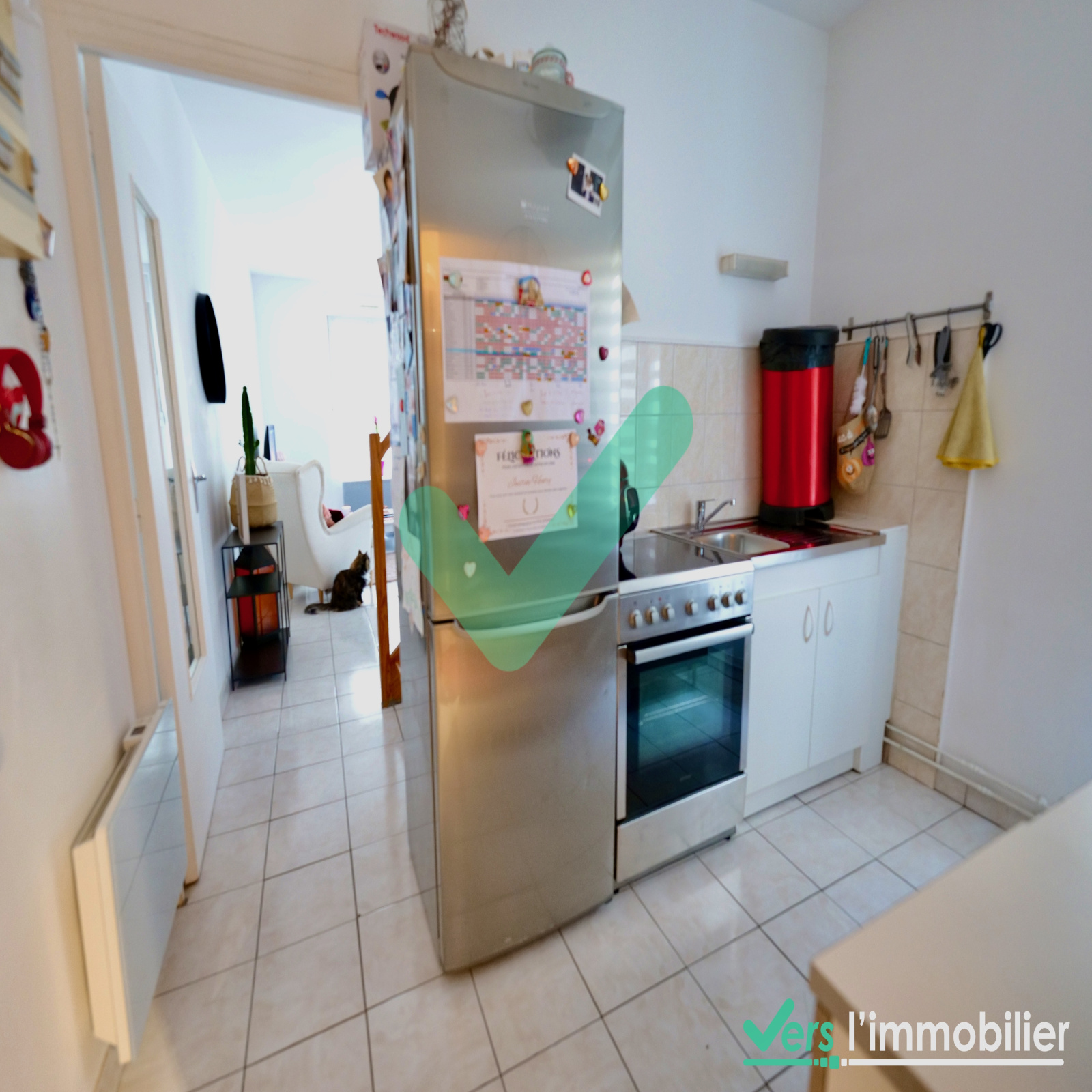 Cet appartement situé au rez-de-chaussée d'une petite copropriété au calme est composé d'une pièce de vie de 18 m2 avec accès à la cour privative sans vis-à-vis, la cuisine et la salle d'eau avec wc.